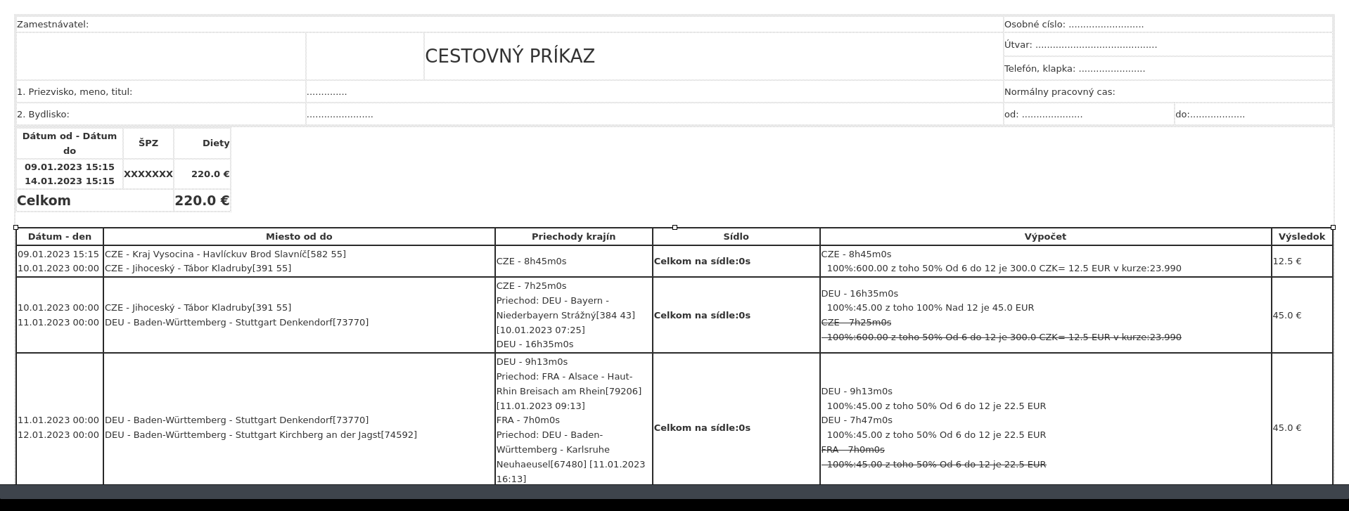 Samozrejmosťou sú detailné reporty Cestovné príkazy, Kniha jázd a iné, ktoré je možné generovať za rôzne obdobia ako napríklad týždňové, mesačné… Reporty je možné nastaviť aby Vám taktiež chodili automaticky za určité obdobie priamo na Váš email bez potreby manuálneho generovania.